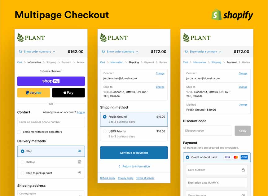 A multi-page or multi-step checkout divides the checkout process into distinct steps and pages, guiding customers through a series of actions to complete their purchase.